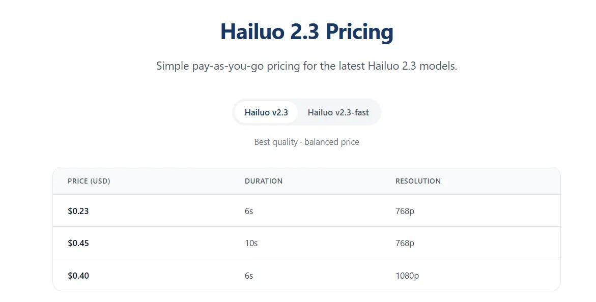 For more details/latest pricing, refer to the Hailuo API Docs and Kling API Docs, or visit our pricing pages.