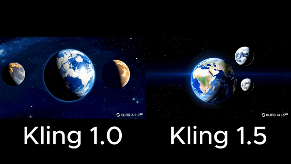 Both versions captured the prompt descriptions. Although the version generated by Kling 1.5 has a more accurate depiction of the Earth and its moons.