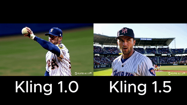 Both videos show impressive realism, with shadows beneath the MLB players' caps following the head movements. However, the video generated by Kling 1.5 stands out more given its higher definition.