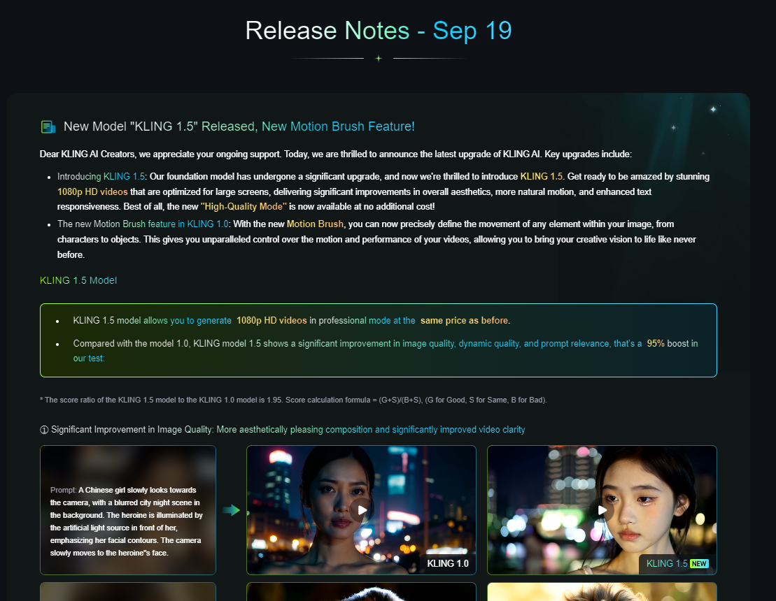 With the new 1.5 version update, Kling promises improvements in image quality, dynamic quality, and prompt relevance. Kling has also added a new motion brush feature, where you can precisely define the movement of any element in your image, giving you unparalleled control over the motion and performance of your videos.